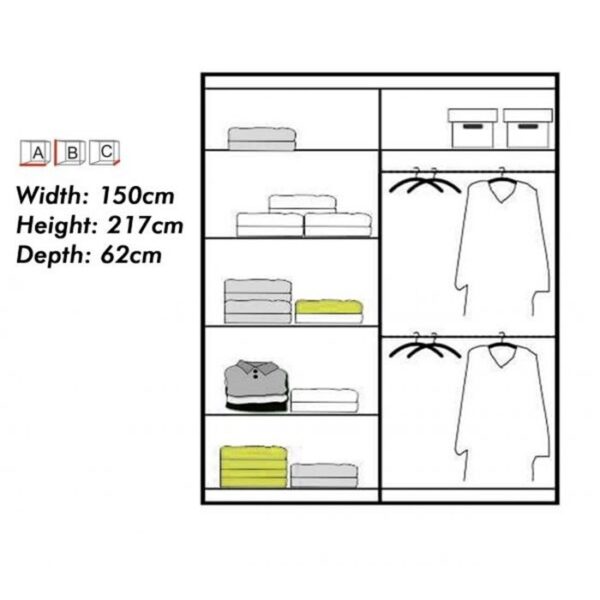 Available in classic color options of Black, Grey, and White, the Nordic Mirror Sliding Door Wardrobe seamlessly fits into any bedroom decor, offering a sophisticated touch. It is available in four different sizes—120cm, 150cm, 180cm, and 203cm—to suit rooms of all sizes and provide the storage space you need without compromising on style.